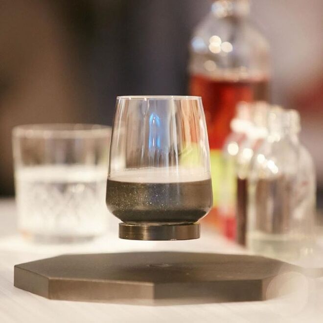 • Agitar e servir num copo de vinho sem pé; fazer o cocktail flutuar usando a tecnologia de levitação magnética.