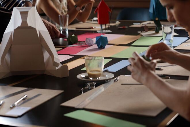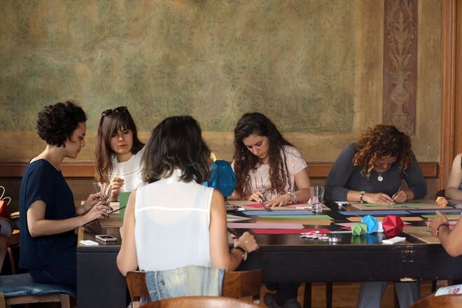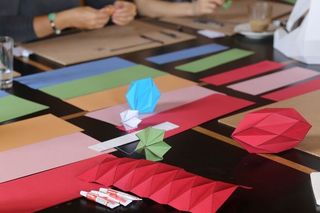 O primeiro momento desta residência é um workshop de dobragem de papel, com várias técnicas a serem lecionadas durante sábado, dia 8.
