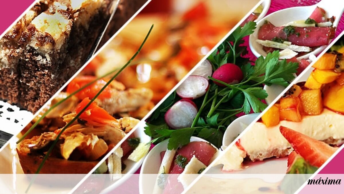 Composição dos brunches: pão e croissants, saladas, bacon e salsichas, ovos mexidos com espargos ou cebolas, sobremesas secas ou de colher, sopa de couve roxa ou creme, e um prato quente que vai variando