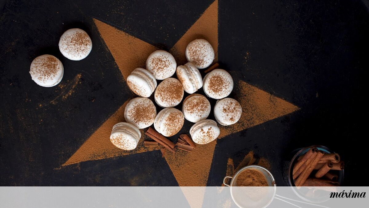 9. Para o creme de manteiga: numa tigela grande, bata a manteiga com o extrato de baunilha, durante 2-3 minutos, até obter um creme esbranquiçado. 10. Adicione o açúcar em pó, dividido em quatro porções, batendo fortemente entre cada adição, até o creme de manteiga apresentar uma textura homogénea. Junte o leite e a canela em pó e continue a bater durante 2 minutos. 11. Ponha a massa num saco de pasteleiro com um bico circular. Espalhe o creme de manteiga sobre a parte inferior de cada círculo de macaron e una-os dois a dois para finalizar. 12. Para servir: polvilhe com canela em pó antes de servir.