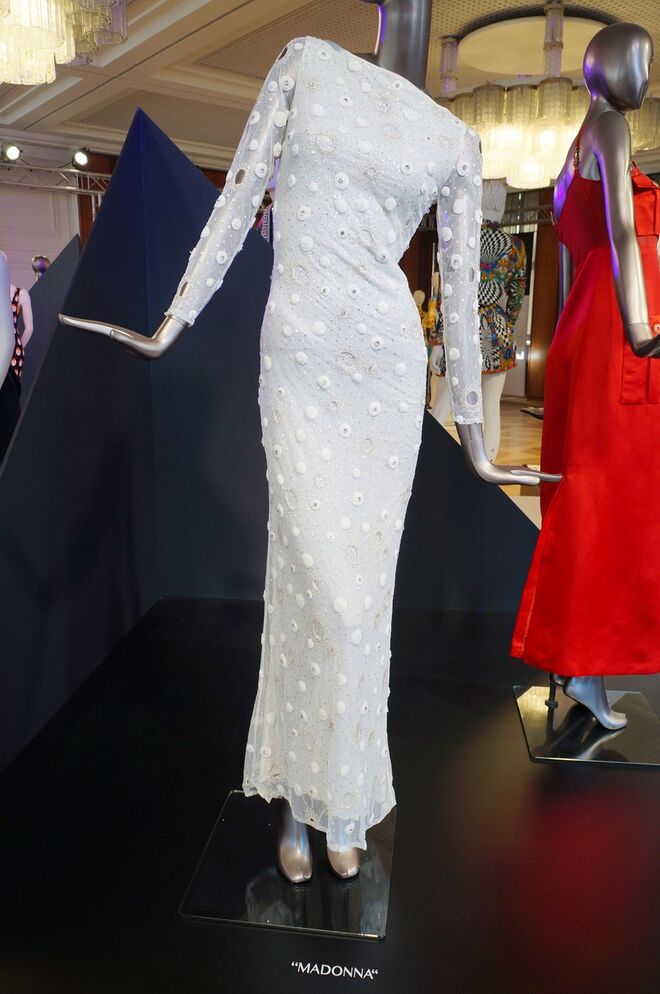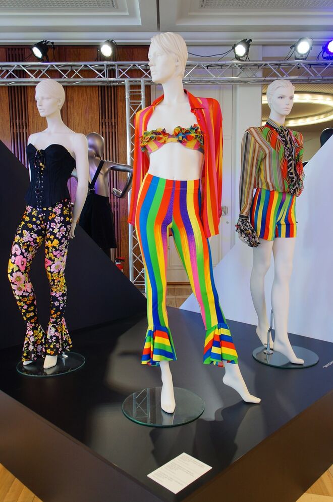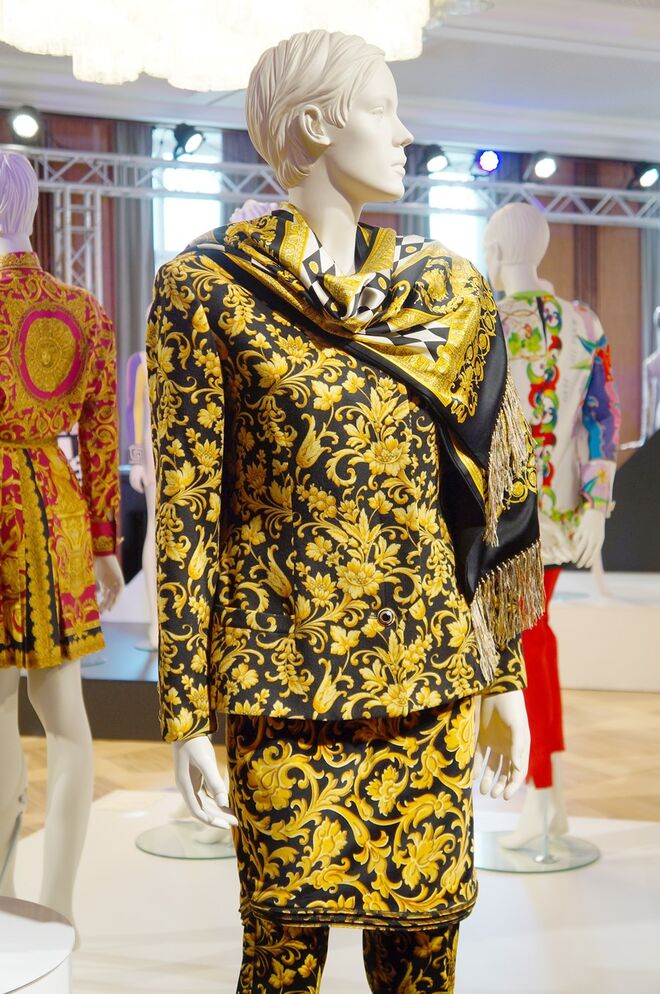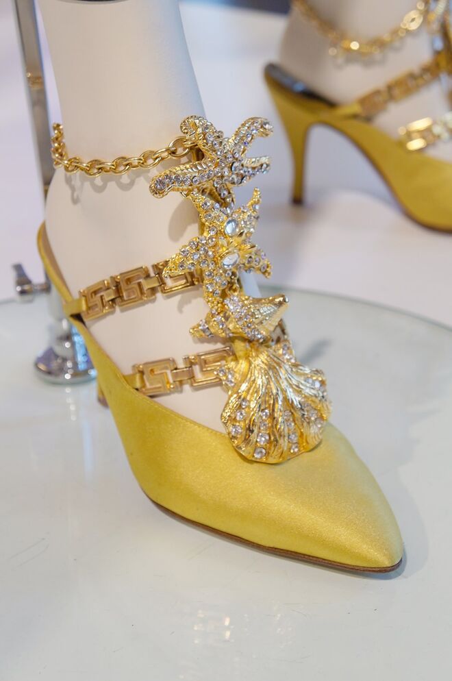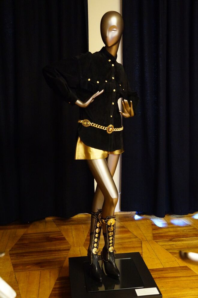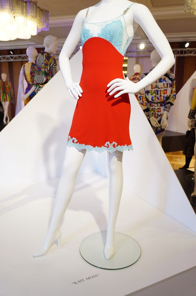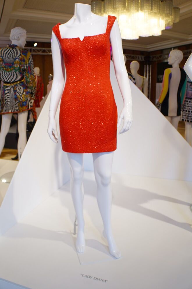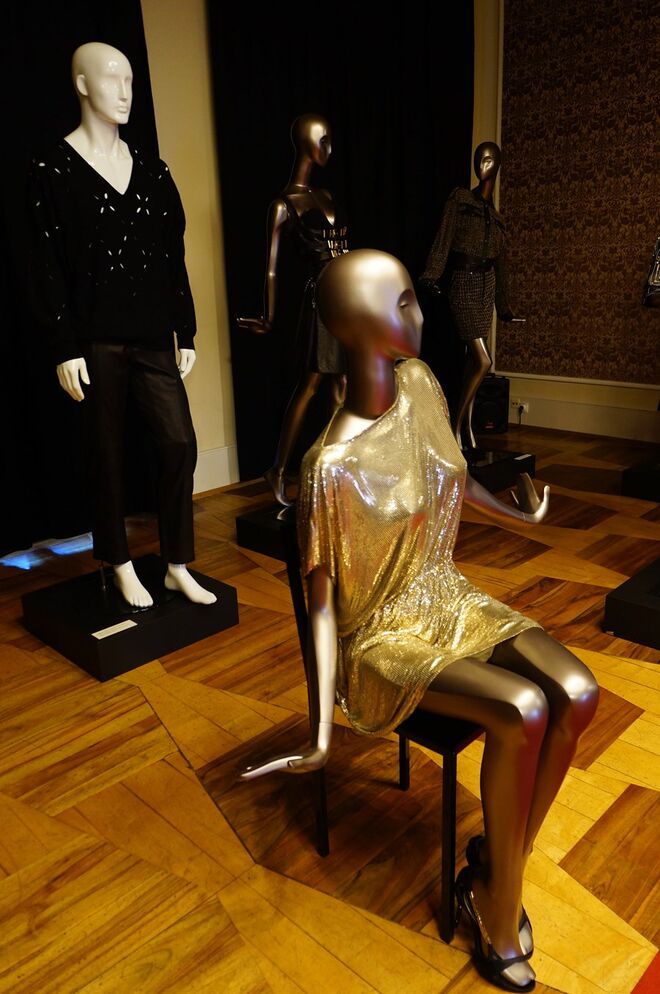Numa curadoria minuciosa, foram selecionadas 300 peças de roupa, além de outros artefactos de coleções privadas da Itália, Brasil, Grécia e Estados Unidos, que compõem um panorama da sua carreira, ao incluir peças vistas raríssimas vezes desde os anos 1980. Ao caminhar pelos três andares do palácio, vi placas a identificar roupas que foram usadas pela princesa Diana, Madonna, Claudia Schiffer e Kate Moss, por exemplo.