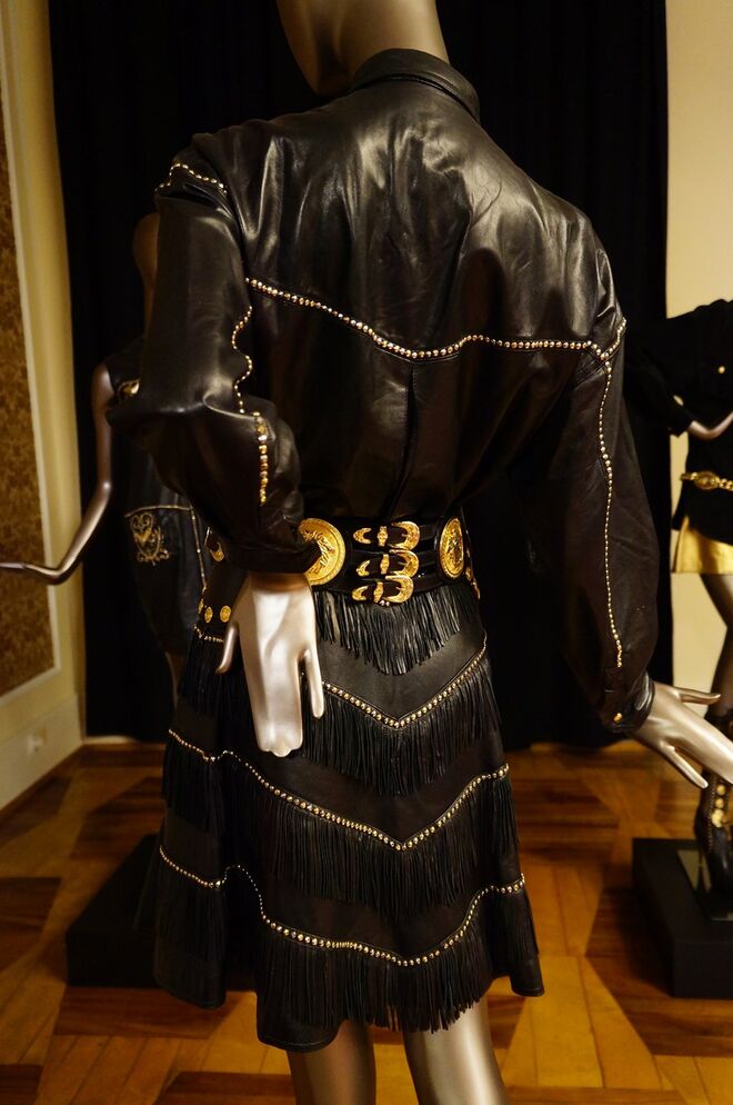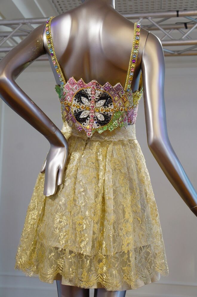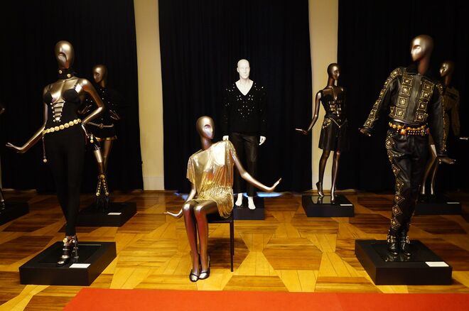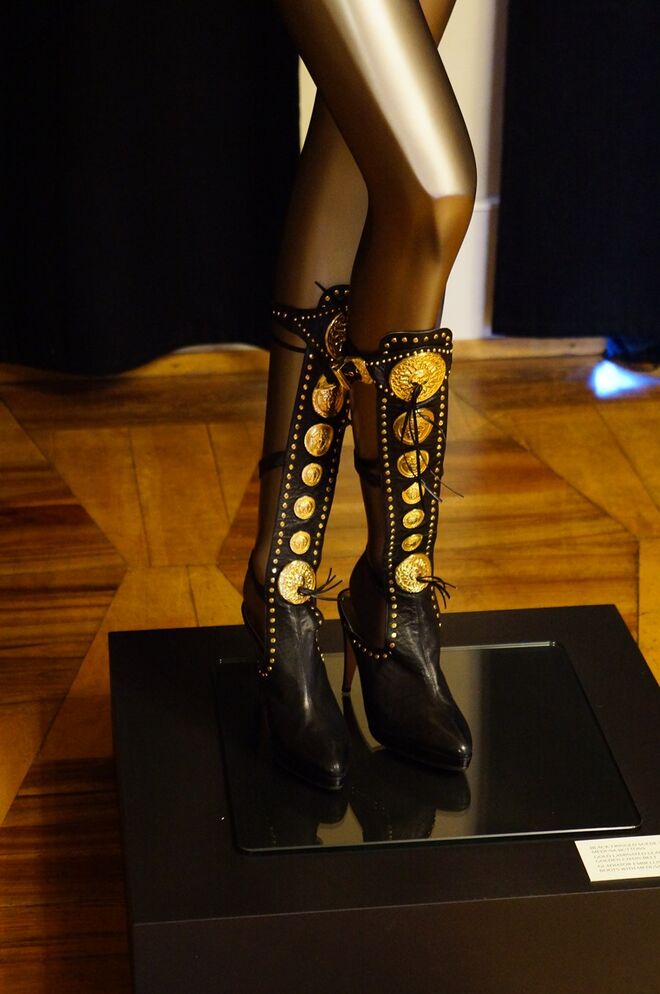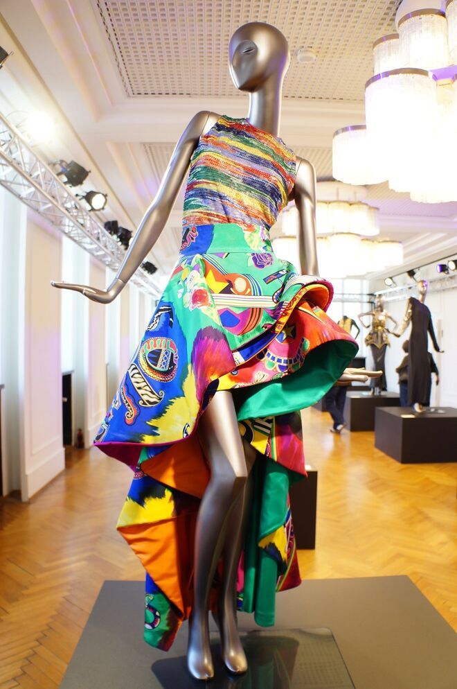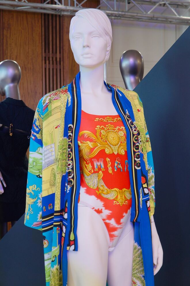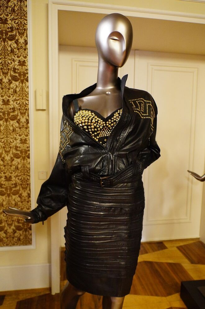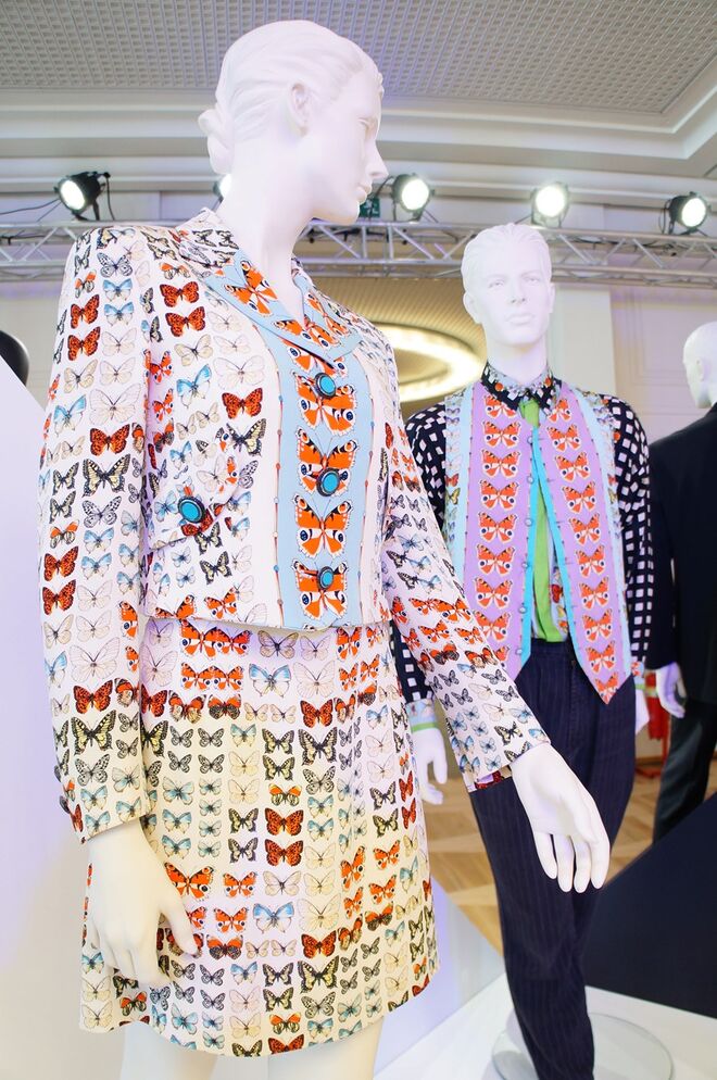 Numa curadoria minuciosa, foram selecionadas 300 peças de roupa, além de outros artefactos de coleções privadas da Itália, Brasil, Grécia e Estados Unidos, que compõem um panorama da sua carreira, ao incluir peças vistas raríssimas vezes desde os anos 1980. Ao caminhar pelos três andares do palácio, vi placas a identificar roupas que foram usadas pela princesa Diana, Madonna, Claudia Schiffer e Kate Moss, por exemplo.
