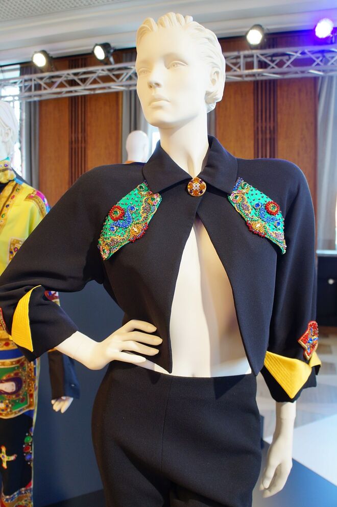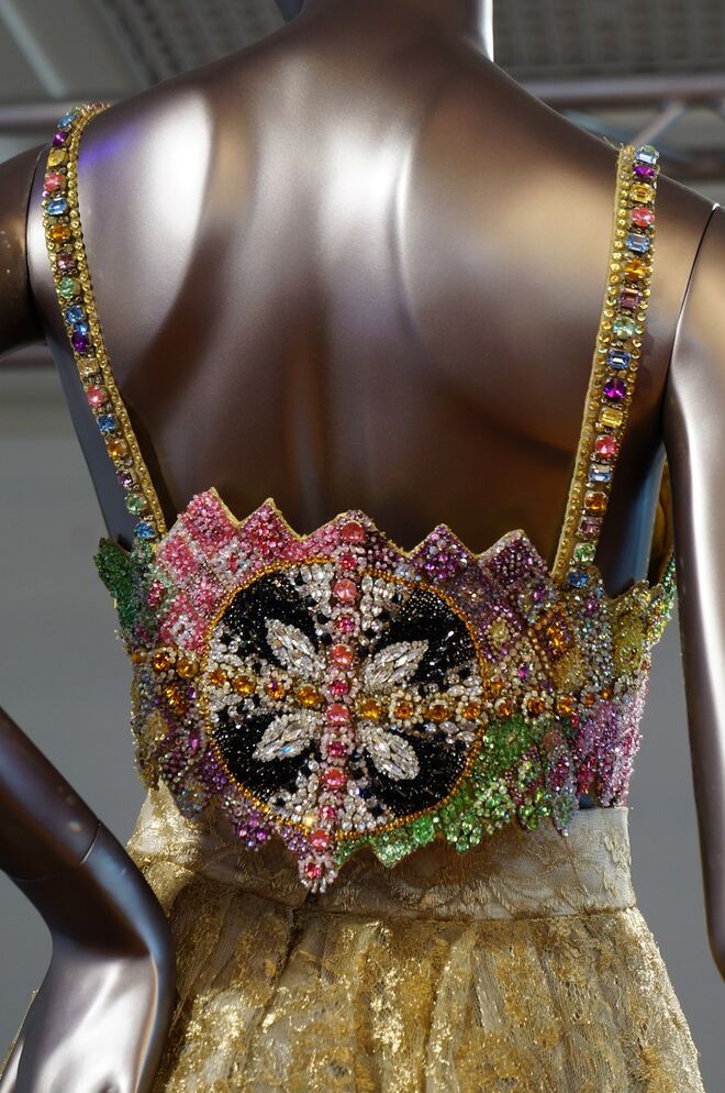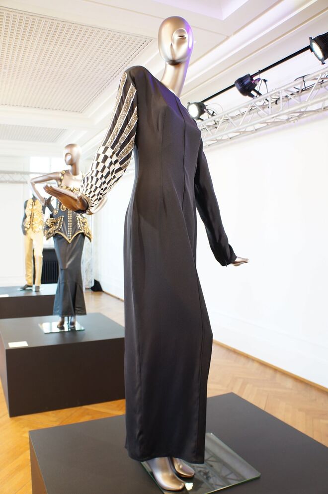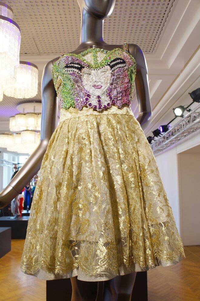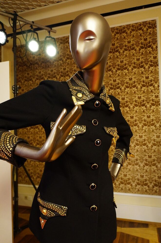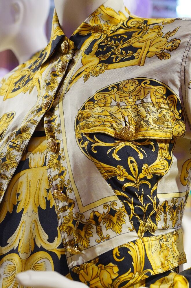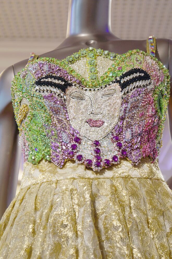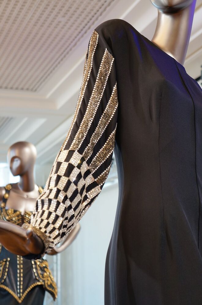 Numa curadoria minuciosa, foram selecionadas 300 peças de roupa, além de outros artefactos de coleções privadas da Itália, Brasil, Grécia e Estados Unidos, que compõem um panorama da sua carreira, ao incluir peças vistas raríssimas vezes desde os anos 1980. Ao caminhar pelos três andares do palácio, vi placas a identificar roupas que foram usadas pela princesa Diana, Madonna, Claudia Schiffer e Kate Moss, por exemplo.