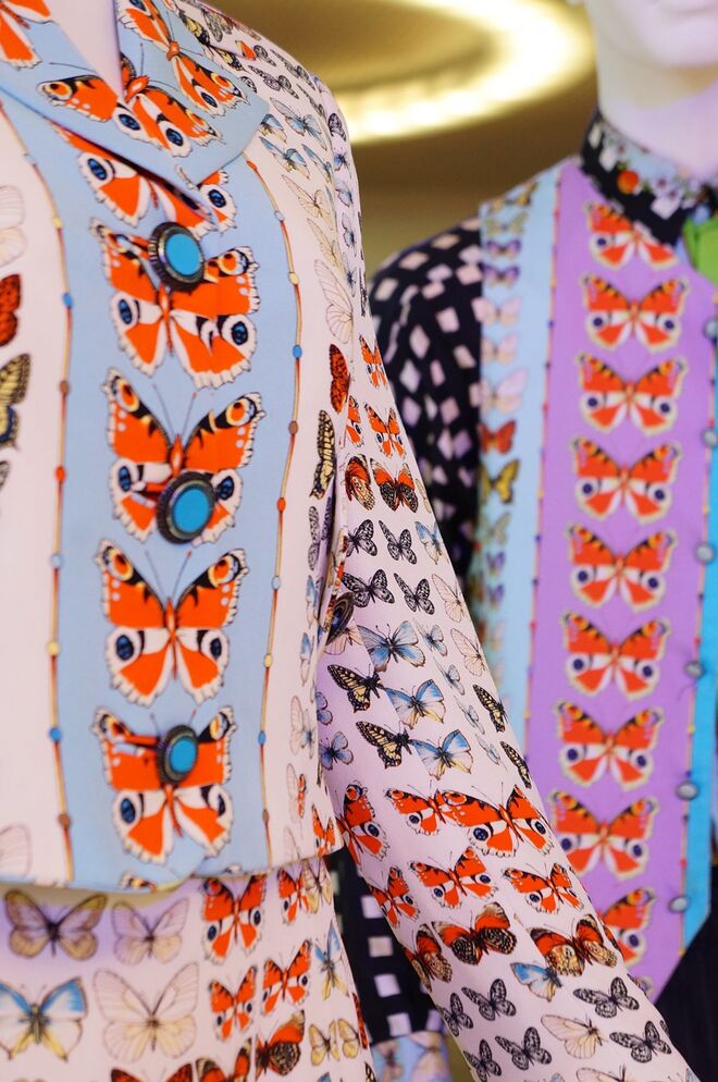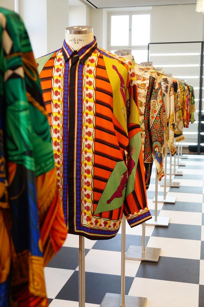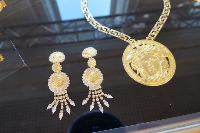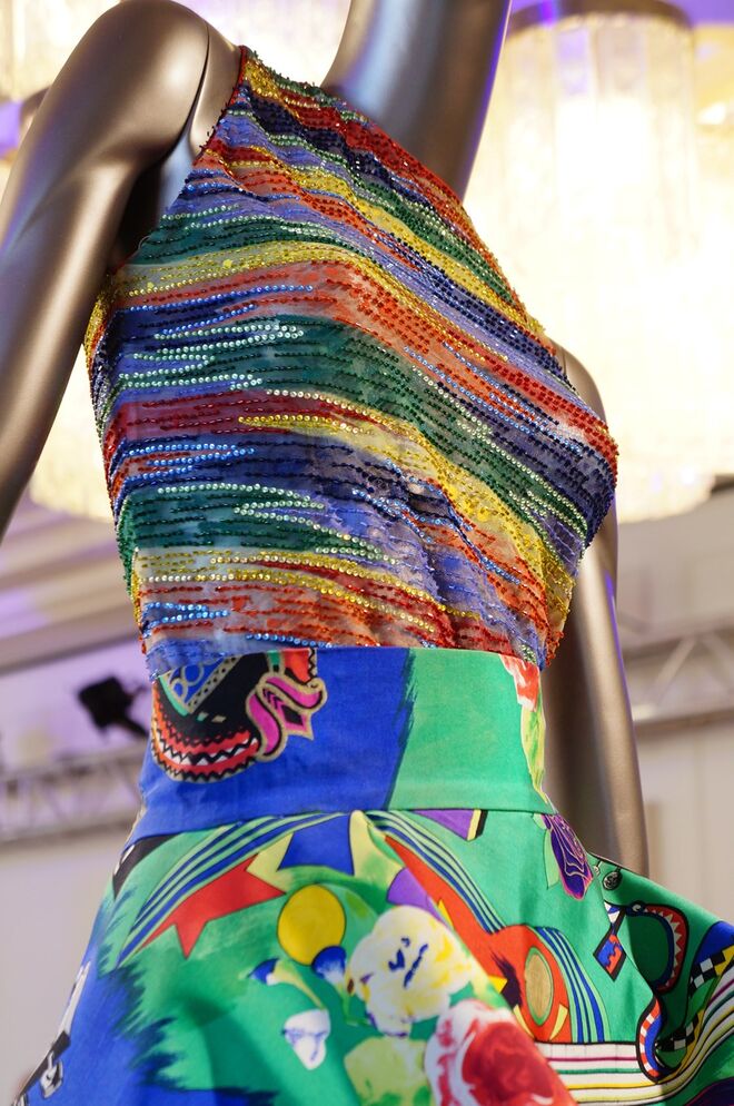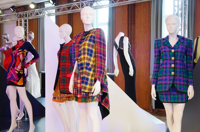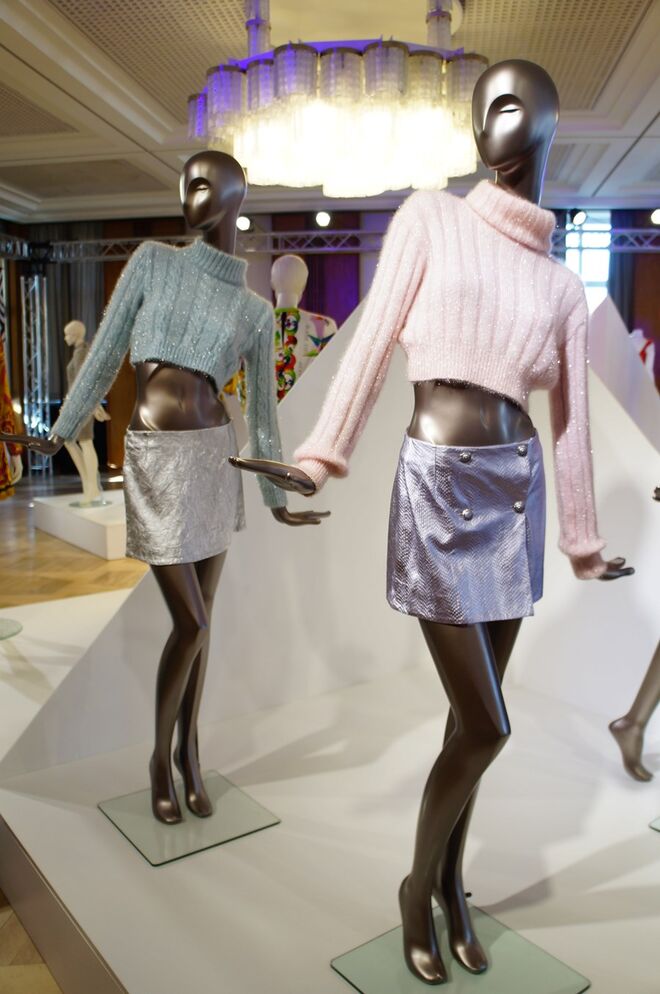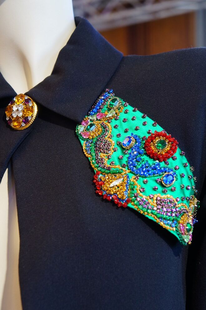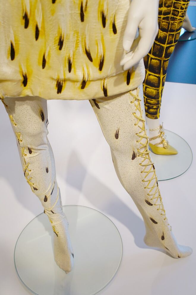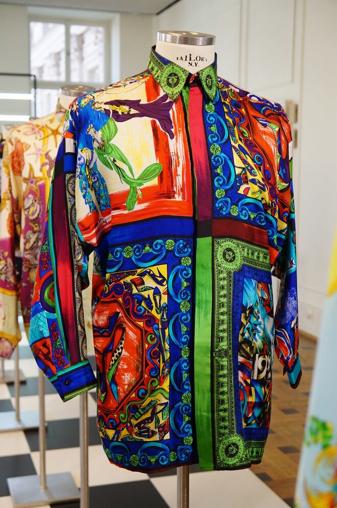 Numa curadoria minuciosa, foram selecionadas 300 peças de roupa, além de outros artefactos de coleções privadas da Itália, Brasil, Grécia e Estados Unidos, que compõem um panorama da sua carreira, ao incluir peças vistas raríssimas vezes desde os anos 1980. Ao caminhar pelos três andares do palácio, vi placas a identificar roupas que foram usadas pela princesa Diana, Madonna, Claudia Schiffer e Kate Moss, por exemplo.