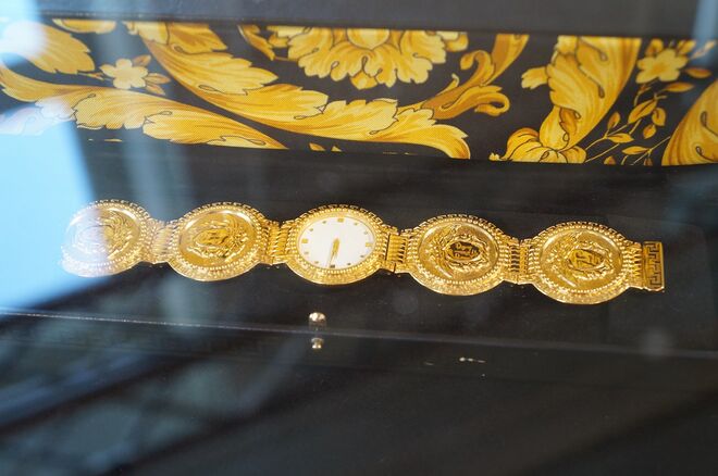 Além das roupas femininas e masculinas de um dos maiores ícones de moda do século XX, a exposição mostra também acessórios, como sapatos, carteiras, relógios, brincos, colares e lenços. Uma das salas passa vídeos de desfiles e sobre a carreira de Gianni, todos com direito a pipocas aromatizadas com ervas.