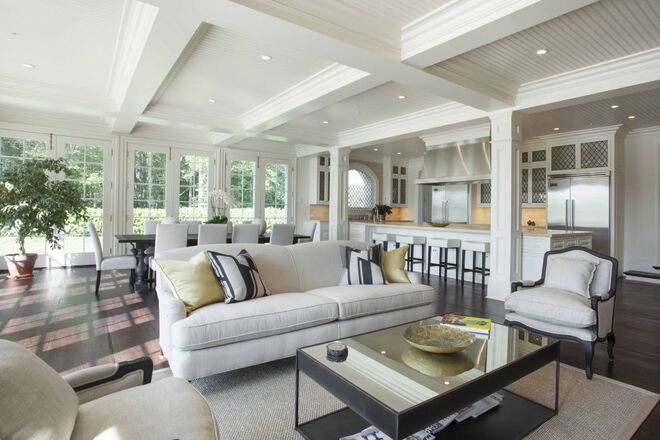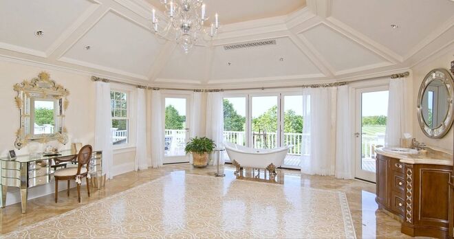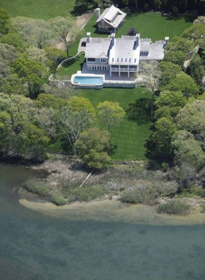 A mansão, situada ao lado de uma reserva natural de 17 hectares e virada de frente para o lago Georgica, conta com 7 quartos e 7 casas de banho. O construtor da casa deu-lhe uma volta de 90 graus, de forma a otimizar a vista para o lago.