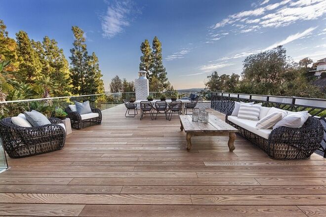 A mansão é composta por 5 quartos, um espaço dedicado ao exercício físico com mesa de massagem, uma piscina, um espaçoso closet e um terraço gigantesco com espaço suficiente para albergar as tão famosas festas privadas de Hollywood.