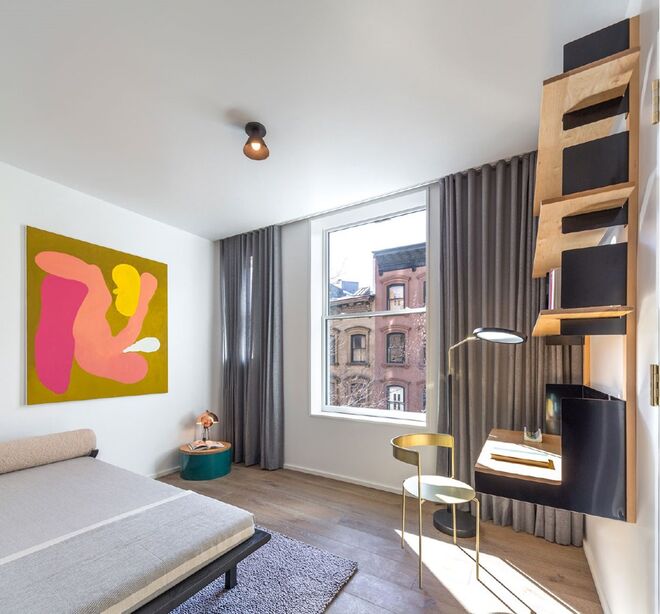 A casa conta com 578 metros quadrados, seis quartos e um amplo terraço virado para a cidade. O próprio edifício em si é uma autêntica joia para os apreciadores de design. Foi construído em 1903 pelo arquiteto de Brooklyn, Frank S. Lowe, e foi inicialmente pensado para ser um hotel.