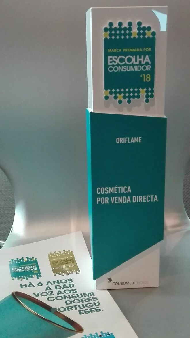 A Oriflame foi distinguida com o prémio de Escolha do Consumidor 2018, na categoria Cosmética por Venda Direta.