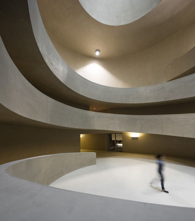 Desenrolada em espiral até aos 40 metros de profundidade, a Adega da Herdade do Freixo foi distinguida com o prémio Edifício do Ano 2018, na categoria de Arquitetura Industrial.