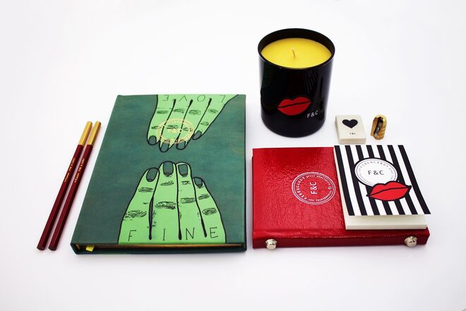 Fine & Candy é uma marca de estacionário de luxo, fundada no Porto. Todas as peças apresentadas pela marca são únicas e totalmente elaboradas manualmente, através de um design original e recorrendo a sabedoria tradicional. Para esta coleção, a marca criou propostas românticas e originais.