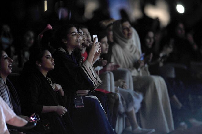 As instruções impressas no bilhete do concerto eram claras: era estritamente proibido dançar ou abanar o corpo. Junto às bancadas, guardas do sexo feminino vestidas com abayas grenás examinavam o público, como numa versão muçulmana do Handmaid's Tale, procurando alguém que aplaudisse de forma demasiado ritmada. Todavia, os organizadores do evento não tinham avaliado bem quão excitadas seis mil sauditas poderiam ficar quando Tamer Hosny subisse ao palco. O cantor egípcio, vestido com um fato preto, percorreu o palco e apontou para o público: "Olá, Arábia Saudita!", gritou, antes de começar a cantar uma das suas – relativamente atrevidas – canções pop. Enquanto os homens presentes no espaço segregado estavam quase todos sentados em silêncio, filmando-se a si próprios ou a Hosny. As mulheres divertiram-se como se fosse o fim do mundo. O ar da noite ficou salpicado de luz quando levantaram os telefones e começaram a abanar o corpo. As lantejoulas das abayas, cuidadosamente escolhidas para essa noite rara, reluziam. Os seus olhos estavam carregados de pestanas falsas. Pensos aplicados sobre narizes recentemente operados [para atribuir traços fisionómicos mais ocidentais] estavam expostos com orgulho. Quando Hosny fazia pausas breves durante um coro, milhares de mulheres gritavam a letra da música e desmanchavam-se a rir. Uma a uma, começaram a aplaudir, levantando-se ocasionalmente dos seus lugares – fazendo as guardas correrem de um lado para o outro para as mandarem sentar-se. Também elas sorriam. Na Arábia Saudita, pouco mudou, de facto, para as mulheres. O governo permitiu algum entretenimento, pôs fim a algumas restrições e deixou as mulheres sentarem-se atrás do volante, mas permaneceu autocrático e extraordinariamente repressivo. Para algumas mulheres, porém, tudo mudou. Pela primeira vez, em muito tempo, há esperança. Eu não sei se estas mudanças serão para sempre ou se tudo vai voltar a ser como era antes", disse Noura, de 22 anos, enquanto os aplausos aumentavam. "Mas eu vou aproveitar. Vou aproveitar muito o que está a acontecer agora."