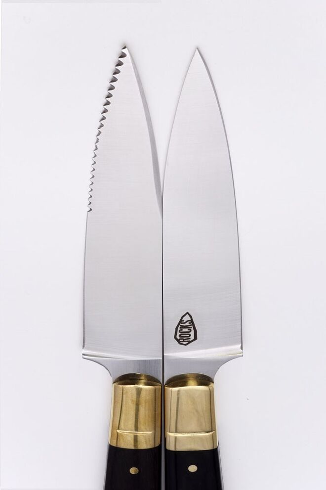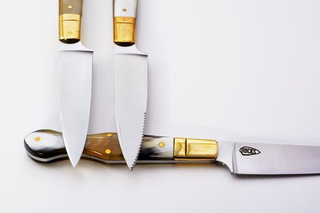 Para materializar a ideia e cumprir a qualidade, convidaram o cuteleiro Carlos Norte, filho de uma geração de mestres da cutelaria nacional, para o projeto. A tipologia de facas Rocks Knives atravessa três fases: a transformação da navalha portuguesa em faca de mesa. Caneças, Bandido e Capa Grilos são canivetes transformados em facas adaptadas à restauração.