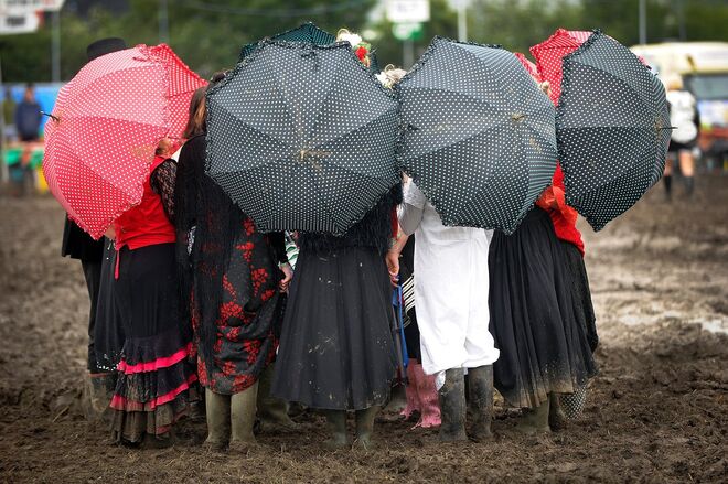 Considerado um dos festivais de música mais 'cool' do mundo (mesmo com muita lama pelo meio), este ano não é excepção. São muitas as celebridades e não celebridades que fazem questão de não falhar ao evento, resgatando dos armários as botas Hunter para enfrentar um dos verões mais chuvosos de Inglaterra. Há looks para todos os gostos, o que interessa é haver muita diversão e alguma originalidade.