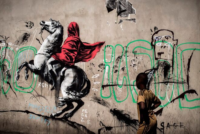 Grafittis sobre a crise migratória, racismo e antissemitismo foram publicados pelo próprio artista na sua conta do Instagram.