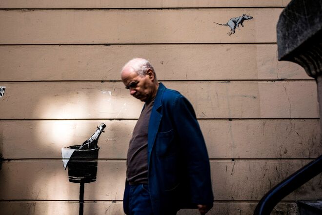 O artista conhecido pelos seus trabalhos grafitados com críticas à sociedade voltou a surpreender toda a gente.