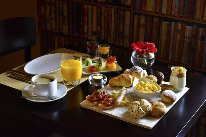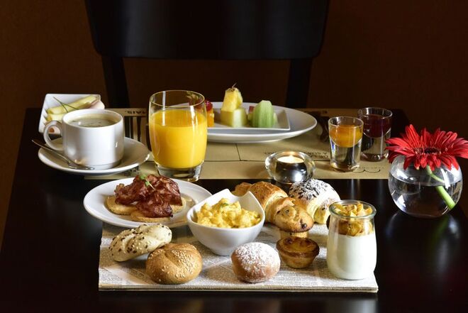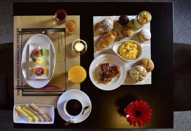 O Brunch Eça de Queiroz inclui nomeadamente uma selecção de viennoiserie, bolo de iogurte, o melhor da padaria, iogurte com fruta e muesli, selecção de compotas, café, chá ou leite, sumo de laranja...). Se escolher a opção Ramalho Ortigão pode experimentar as panquecas com molho inglês e frutos vermelhos, scones com manteiga e compotas e tomate grelhado.