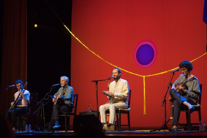Se a premissa prometida, Ofertório, era literal, não diríamos existir melhor palavra para expressar o que Caetano e os três filhos - Moreno, Zeca e Tom - fizeram ontem, no Coliseu de Lisboa. Ofertar. Samba, alegria, cumplicidade. E sempre, acima de tudo, amor.