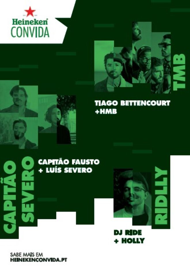 A 28 de junho, Capitão Fausto e Luís Severo juntam-se no Titanic Sur de Mer, em Lisboa, para um concerto dos ‘Capitão Severo’. No mês seguinte, a 31 de julho, os HMB têm encontro marcado com Tiago Bettencourt no Jardim na Villa, no Algarve, dando origem aos ‘TMB’. Já em agosto, a dia 16, será a vez do DJ Ride e Holly se transfigurarem em ‘Ridlly’ em pleno Danau Beach bar, no Baleal. Por fim, os ‘TMB’ e os ‘Capitão Severo’ vão fechar em pleno a nova série de concertos do Heineken Convida com atuações na Praia no Parque (Lisboa), a 5 de setembro, e no Plano B, no dia 20, respetivamente.