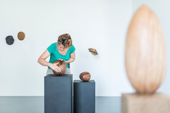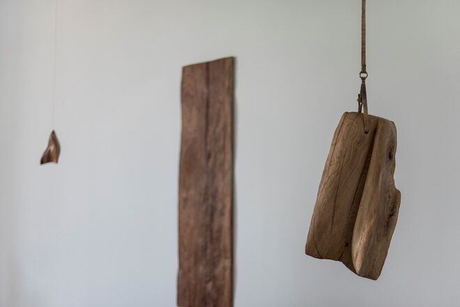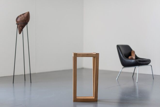 A minha instalação é uma composição. O conceito por trás deste trabalho surgiu da ideia de que vivemos rodeados de composições e que talvez poderíamos escolher os elementos que nos rodeiam. Esta composição de esculturas foi pensada como um espaço de convivência entre as obras (sem hierarquias nem destaques), um espaço que se pode penetrar e experienciar. Trata-se de uma reflexão sobre a nossa relação com as obras de arte e, mais especificamente, com a escultura. Há uma voluntária referência a Brancusi e ao seu ateliê porque acho que este artista marcou um momento-chave na nossa relação com as obras de arte. Há também referências ao mobiliário e aos modos tradicionais de mostrar escultura.