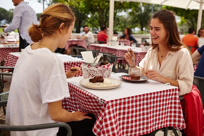 O grande terraço é a toda a hora um lugar ideal para petiscar ou comer uma salada ligeira, aproveitar as noites quentes de verão em frente aos jardins de Belém, que serão propícias a um jantar entre amigos ou para uma ceia romântica à luz das velas.