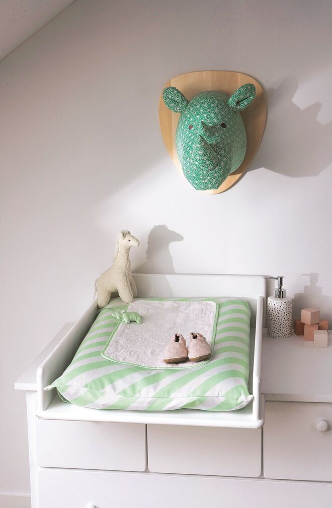 Para o quarto do bebé, o mobiliário branco e as paredes em tons pasteis e cores muito suaves são o pano de fundo que dá o mote a temas com inspirações no mar, nos animais e na natureza. Estes temas estão presentes em peças de decoração como os contornos de berço envolventes, sacos de bebé e mobiles musicais. Um decor tão sereno que na hora do sono embalam o bebé.