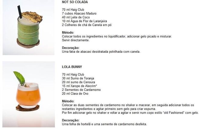 OS cocktails Lola Bunny e Not So Colada têm ambos o whisky Haig Club, e são perfeitos para os fins de tarde.