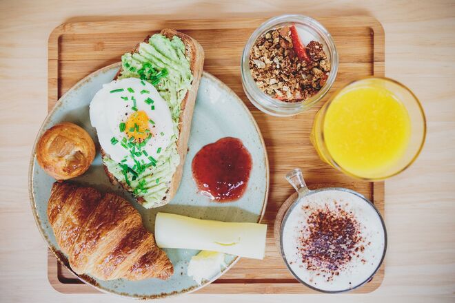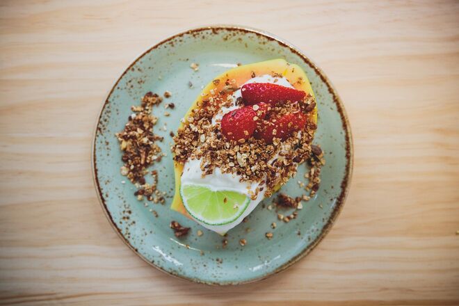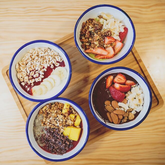 No que diz respeito ao menu, o grande destaque vai para o brunch (€11,95) composto por iogurte com granola e fruta, tosta de abacate e ovo, croissant de cereais com queijo, manteiga e doce, mini muffin, sumo funcional e bebida quente, e o melhor é que aqui o brunch não tem hora marcada. Os amantes de tostas têm duas opções: pão tostado com salmão fumado, requeijão e cebolinho e uma receita vegan com cogumelos frescos e espinafres salteados. É obrigatório experimentar as bowls (€3,45 a €4,50) feitas à medida de cada um, com base de iogurte, açaí ou smoothie. Se tiver pouco tempo, peça a papaia recheada com iogurte, granola e morangos. Para quando a sede aperta, nada como experimentar as bebidas biológicas, café, chás e ainda bebidas vegetais, como o Golden Latte ou Matcha Latte.