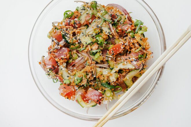 Pode criar o seu próprio poke, o tradicional bowl havaiano à base de peixe cru – uma das opções mais apreciadas. Sugerimos o Aloha (atum, abacate, pepino, cebola roxa, cebola crocante, noz macadâmia, arroz sushi e molho clássico) ou o Fresh (salmão, manga, edamame, abacate, couve roxa, gengibre fresco, mix de ervas, arroz sushi e molho ponzu). E não deixe de iniciar a sua experiência com ostras da Ria Formosa, uma das delícias que o restaurante reserva o ano todo. Os amantes de comida picante têm uma opção especial na carta: o caril Thai vermelho de camarão com arroz integral. Picante na medida certa, sem aquecer. Para finalizar, delicie-se com o bolo de cacau e avelãs (além de lindo, é mesmo bom).