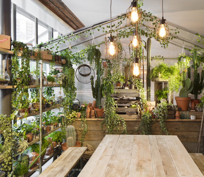 Para dar vida à Pantone 15-0343 Greenery, a cor do ano 2017 da Pantone, esta casa em Clerkenwell, Londres, foi submetida a uma metamorfose, e agora é um oásis verde londrino. O intuito deste espaço é que as pessoas possam realmente viver a cor, e desfrutar dela – seja na sala de jantar como no jardim. Em linha com o crescimento e vitalidade do início de mais um ano, este paraíso mágico é composto por um bosque como receção, uma estufa interior que se desdobra numa sala de jantar, um quarto com um jardim de relva aparada, arbustos ornamentais e plantas soporíferas, um esconderijo em forma de tenda para as crianças dormirem e uma cozinha de jardim de ervas aromáticas.