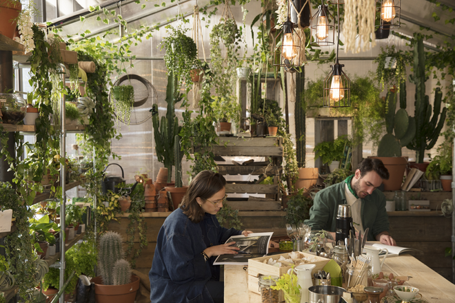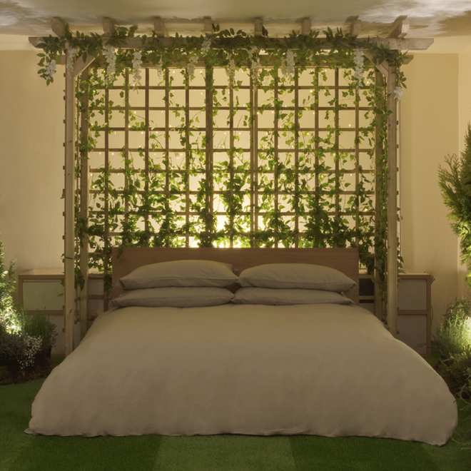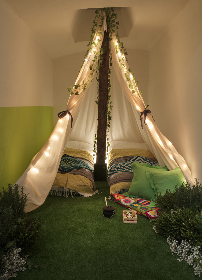 Todas as experiências na Outside In são interativas e inspiradas pela vida na natureza e pela cor Greenery: os hóspedes vão ouvir os sons calmos da natureza em toda a casa, colher ervas e vegetais das paredes, beber chá de folhas colhidas numa instalação hidropónica, escolher plantas para fazer "terrários" e colher folhas para desenhar impressões.