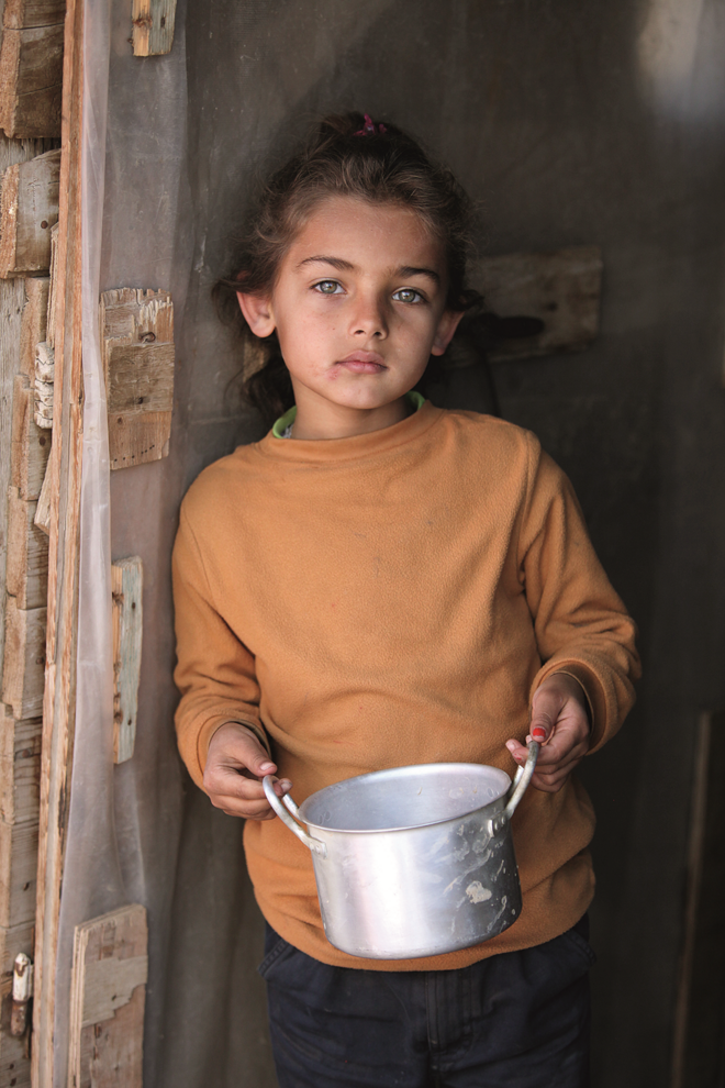 Estávamos em dezembro, mesmo antes do Natal, e, como sou mãe de três crianças, estava nesse momento a ver as notícias sobre refugiados a viver em tendas e havia muitas crianças a morrer. Aquilo tocou-me. Não consegui dormir durante a noite e decidi que queria ir e ver com os meus próprios olhos. Não podia continuar a ignorar e viver na minha pequena bolha. Tinha amigos na Síria que trabalhavam para as Nações Unidas e disse-lhes que queria ir e ver o que se estava a passar – decidi ir todas as semanas. Eles reuniram algumas roupas, comecei a tirar fotografias das pessoas e a falar com elas sobre alimentação. Não tinha intenção nenhuma de criar um livro, inicialmente.