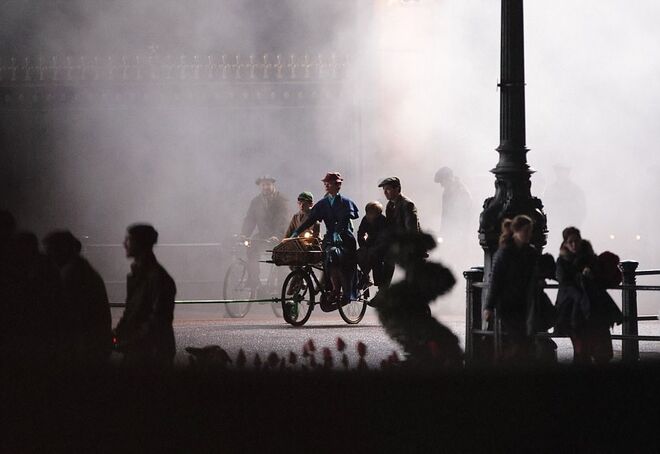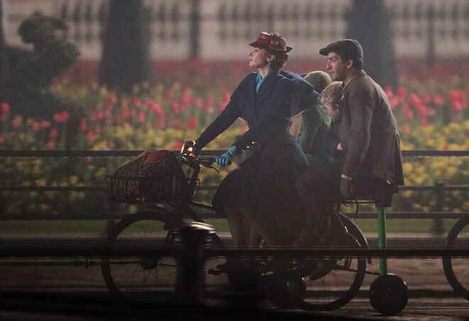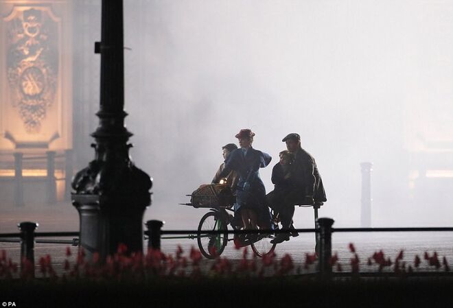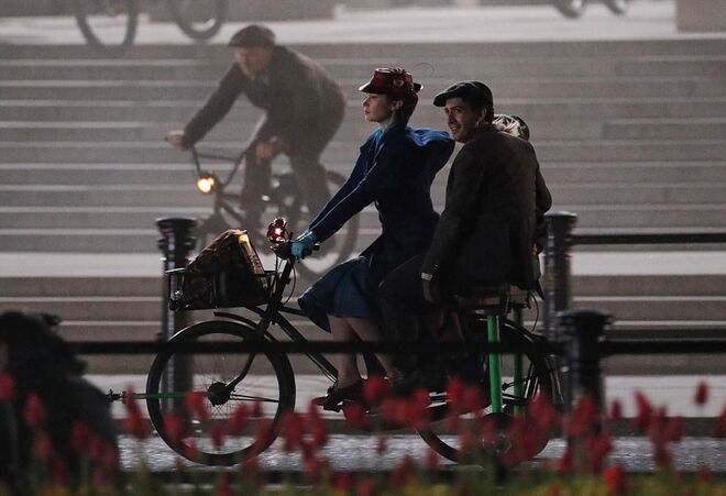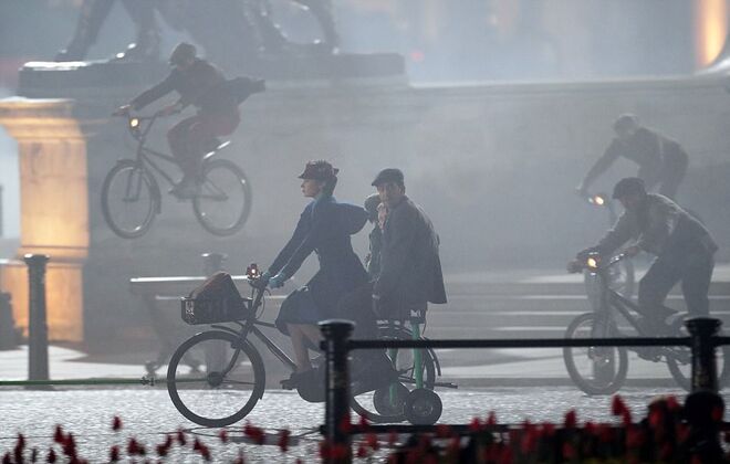 Emily Blunt é a protagonista do remake do filme Mary Poppins que está a ser preparado pela Disney. As gravações já arrancaram e surgiram agora novas imagens captadas no centro de Londres, mais precisamente na zona do Buckingham Palace. Nas imagens podemos ver Emily Blunt a andar de bicicleta pelo meio do mítico nevoeiro de Londres.