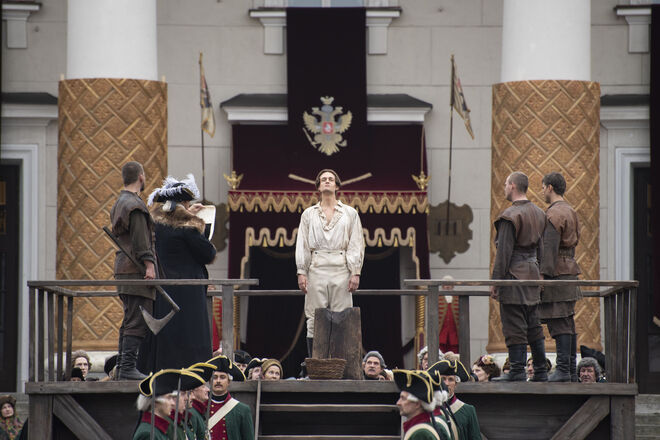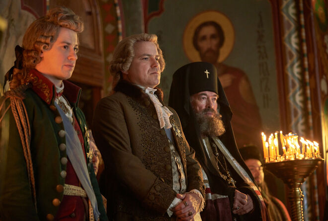 E neste caso foi isso que aconteceu. Catarina II nasceu na Alemanha, casou-se com o grão-duque Pedro Feodorovich, o Pedro III, a quem a própria derrubou, tomando o poder e tornando-se uma das maiores potências mundiais. E os episódios de quase 60 minutos mostram toda essa grandeza e opulência, seja pelos cenários, que nos fazem querer voar até São Petersburgo imediatamente, como pelo guarda-roupa, a cargo de Maja Meschede.