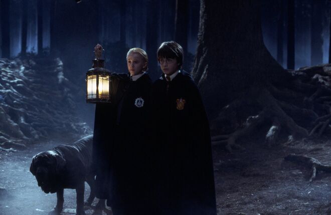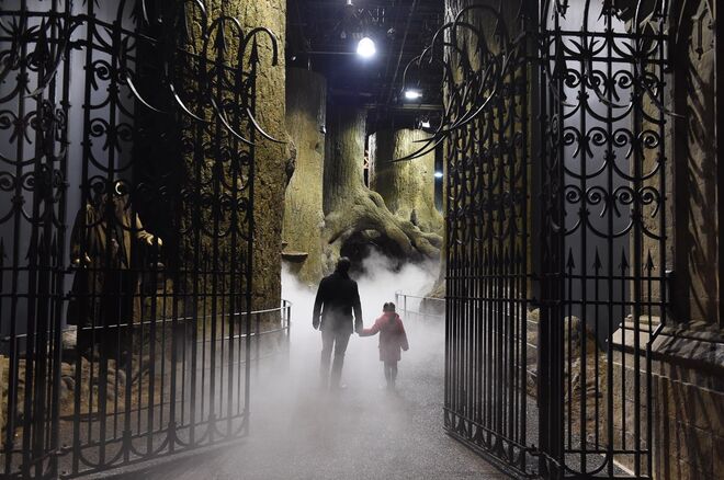 'Eu fiz uma cena na floresta, mas estava sol, por isso é engraçado poder estar aqui e visualizar o espaço tal como seria suposto - escuro e misterioso', referiu Lynch. Já os gémeos confessaram ser estranho voltar ao estúdio: 'Quando aqui voltamos, lembramo-nos sempre das inúmeras horas e dias que passámos a filmar Harry Potter'.
