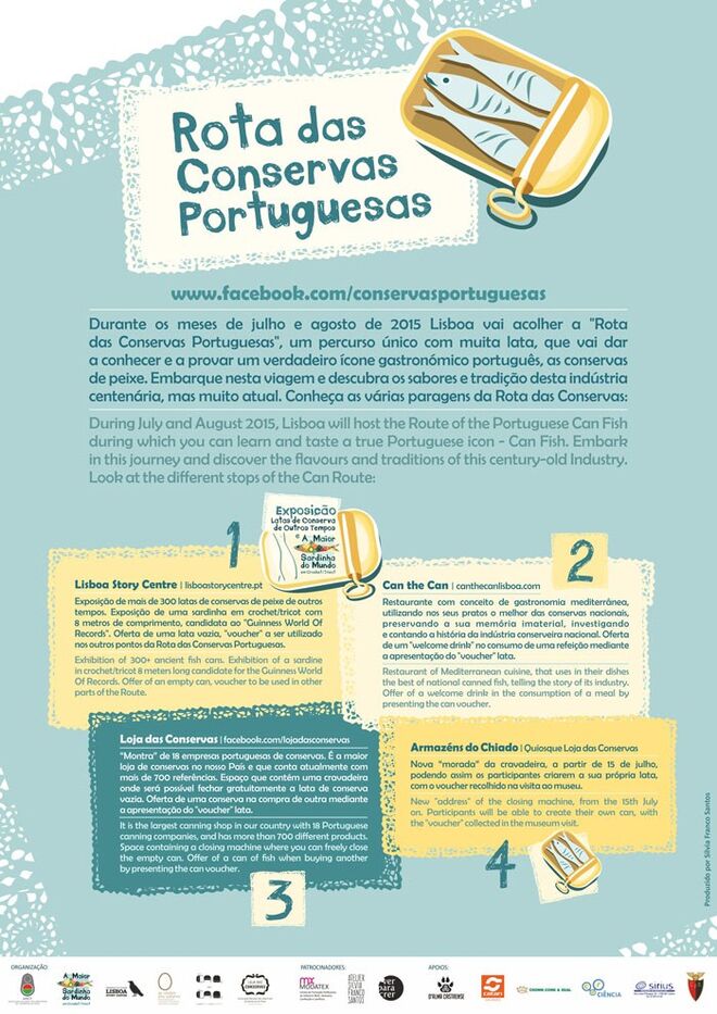 Durante os meses de julho e agosto, Lisboa acolhe este roteiro cheio de "lata", um itinerário que promete conquistar o paladar de todos e que se estende por quatro diferentes locais - Lisboa Story Centre, Loja das Conservas, Restaurante Can the Can Lisboa e Quiosque LDC nos Armazéns do Chiado - sustentados na tradição centenária e qualidade irrepreensível das conservas de peixe portuguesas.