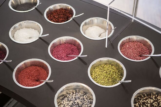 Com vários sabores à escolha e uma grande variedade de toppings, amêndoas caramelizadas com canela, pérolas de chocolate, crocante de amora, pistácio, morango desidratado, merengue, pétalas de rosa cristalizadas, os consumidores têm a possibilidade de fazer cerca de 200 combinações diferentes.