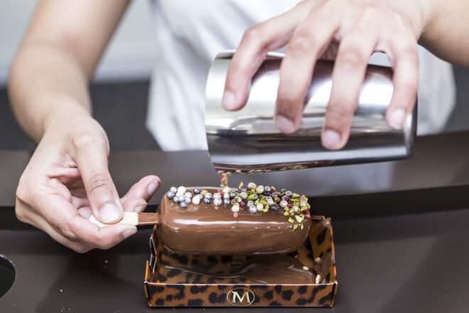 A personalização dos gelados termina numa experiência única e sofisticada, que permite ao consumidor escolher a cobertura que irá envolver o seu Magnum: chocolate branco, chocolate de leite ou chocolate negro (70% cacau).