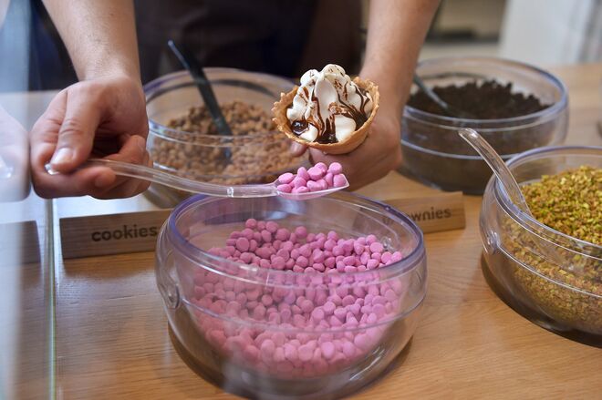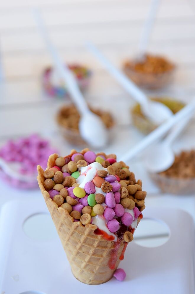 Aberto das 10h00 às 24h00, este quiosque apresenta uma gama completa de produtos composta pela oferta de gelados atualmente existentes em todos os restaurantes McDonald’s – McFlurry, Sundae e Grand Parfait – complementada por novos gelados de morango – como o N’Ice Fruit (copo ou cone) e o formato infantil McFreezy. Além disso, vai ser possível criar uma versão customizada – o Spot the Cone ou Spot the Cup – com toppingscrocantes (brownie, triple chocolate, caramelo salgado, cookies, mini-suspiros, Smarties, amêndoas caramelizadas ou pistácio) e líquidos (caramelo, chocolate, morango ou maracujá). O preço varia entre os 0,75 e os 2,25 euros (acrescem 0,25 euros por cada topping crocante e 0,35 por cada topping líquido extra).