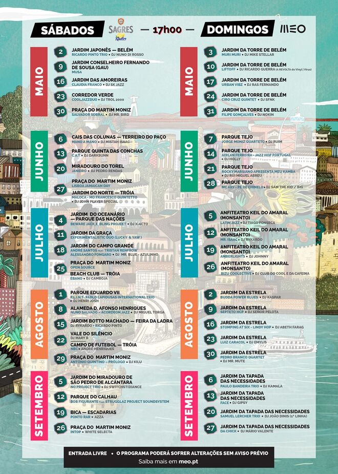 Marcadas estão já passagens pelo Parque Eduardo VII (dia 1), a Alameda D. Afonso Henriques (dia 8), o Jardim Botto Machado – Feira da Ladra (dia 15) e o Vale do Silêncio (dia 22). O evento volta a dirigir-se a sul pela última vez, ao Campo de Futebol de Troia, a 22 de Agosto.