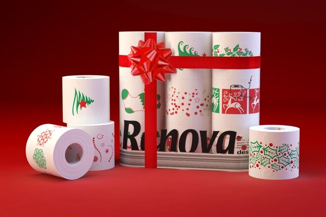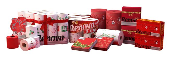 Guardanapos, papel higiénico e rolos de cozinha com diferentes ilustrações alusivas ao Natal, com cores natalícias e ainda lenços faciais numa caixa colorida juntam-se para presentear sorrisos pelos convidados. Tudo isto com a qualidade singular de Renova, resistente e com texturas extra suaves, macias ao toque.