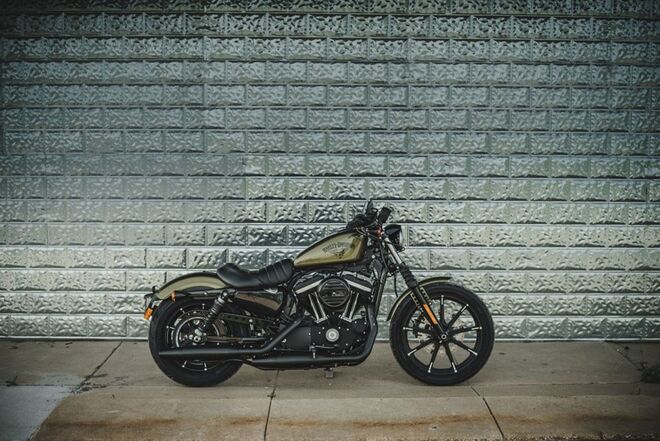 A Iron 883 é acionada por um motor V-Twin de 883 cc Evolution®, afinado para arrancar rapidamente quando o semáforo passa a verde. Um disco de travão dianteiro flutuante escurecido complementa as jantes de nove raios em alumínio fundido, com acabamentos em preto e com destaques maquinados.
