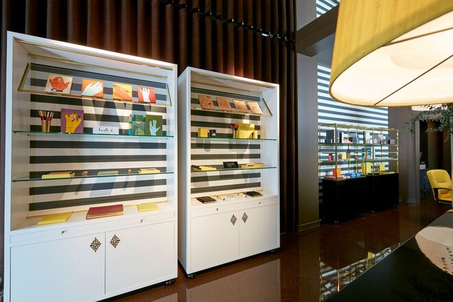O espaço reforça os elementos principais da Fine&Candy - delicados e apaixonantes produtos de papelaria tradicional, com produção artesanal portuguesa.
