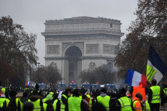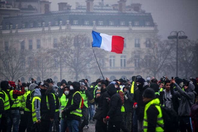 A peça fluorescente assumiu um significado político para os protestantes franceses contra os preços dos combustíveis. E não só.