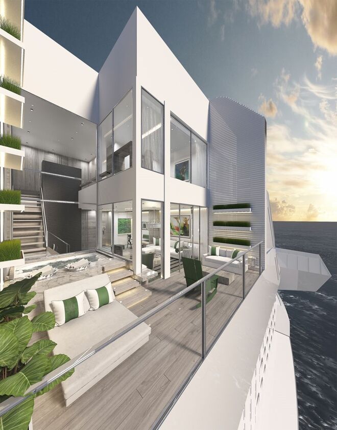 O cruzeiro conta ainda com uma zona chamada Infinite Verandas, cuja paisagem dos quartos compete com a maravilhosa vista que o capitão terá. Ao carregar num simples botão, um deck extensível fará aumentar o espaço exterior sobre o mar.
