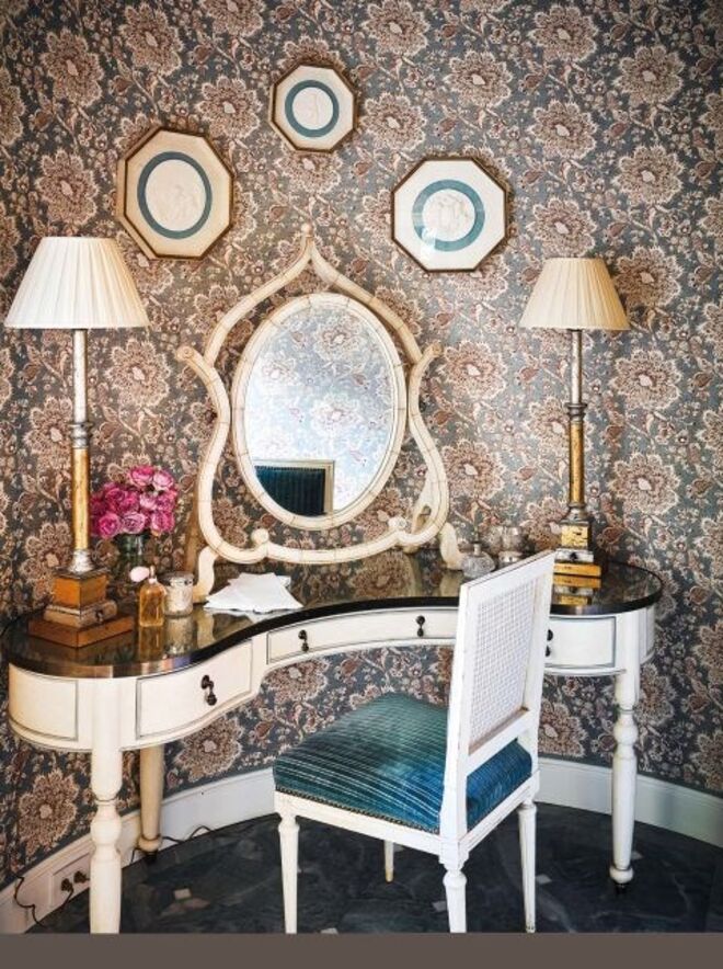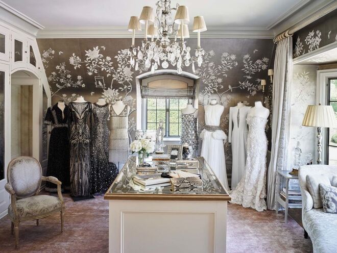 O closet da mulher de Tommy é também um dos ex-líbris da casa, já que consegue refletir o seu próprio estilo, com paredes revestidas a papel pintado à mão J.D. Staron e o chão com uma alcatifa de seda. As cortinas foram desenhadas por Rinfret e bordadas em seda da Holland & Sherry.