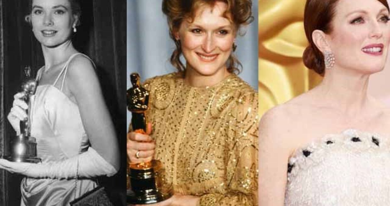 34 de 88 /1983 | Meryl Streep ganha o primeiro Óscar para melhor atriz. A curiosidade é que estava grávida de seis meses, uma circunstância ocultada pelo seu vestido de Christian Leigh, feito de ouro.