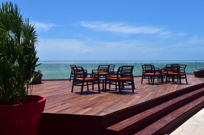 De salientar ainda, no piso inferior, a piscina e o Ocean Bar, também ele totalmente inovador, apresentando o novo conceito de mercearia e pastelaria (grab & go). Com este sistema os hóspedes pedem e levam no momento as suas refeições de volta para o quarto, piscina ou praia.