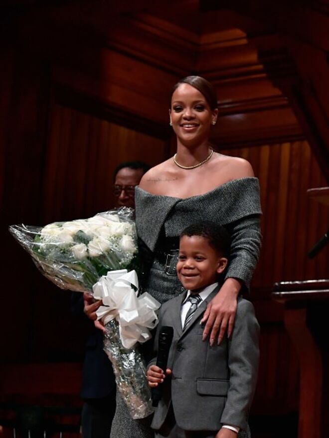 Rihanna tornou-se assim a primeira mulher cantora a receber este Prémio Humanitário do Ano entregue pela Universidade de Harvard. A cantora marcou presença na entrega de prémios e fez um discurso, de quase 10 minutos, bastante emotivo. Para a ocasião, Rihanna escolheu um vestido em estilo diplomático da coleção outono-inverno 2017 de Monse. 'Não é necessário ser-se rico para ajudar alguém. Nem tão pouco famoso. Nem sequer temos que ser graduados. Quero dizer, oxalá eu fosse...' referiu a cantora durante o seu discurso que pode ser visto na íntegra abaixo.