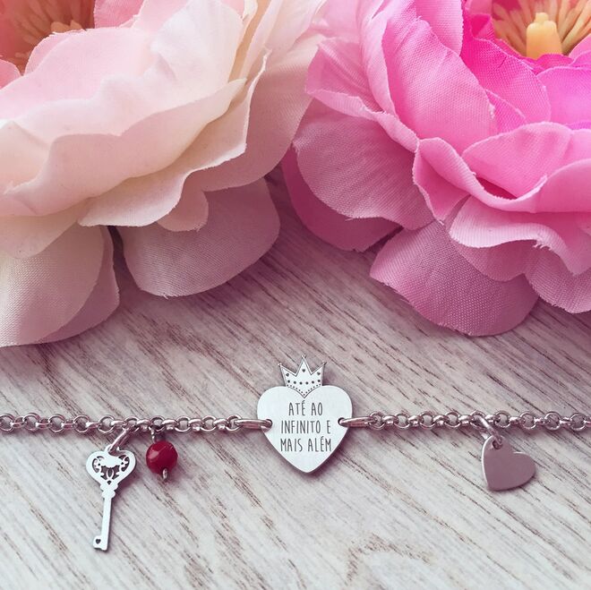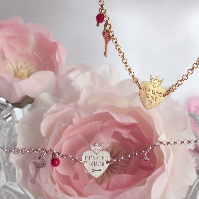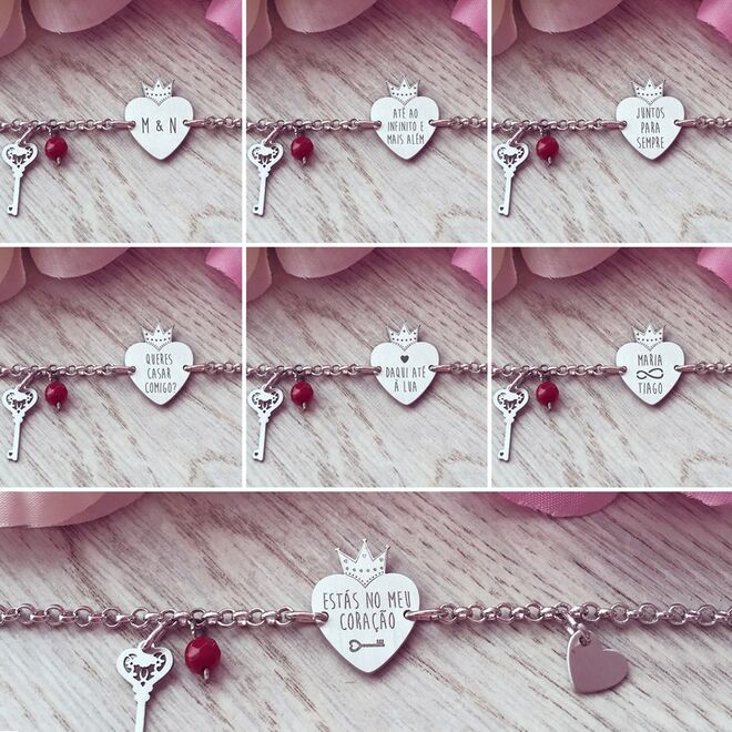 Para o Dia dos Namorados ainda vai a tempo de oferecer um presente romântico e cheio de simbolismo... A Aiaimatilde sugere diferentes pulseiras e colares a propósito da temática. Existem disponíveis em prata ou metal não precioso na cor dourado ou prateado e tem a possibilidade de personalizar o conteúdo.